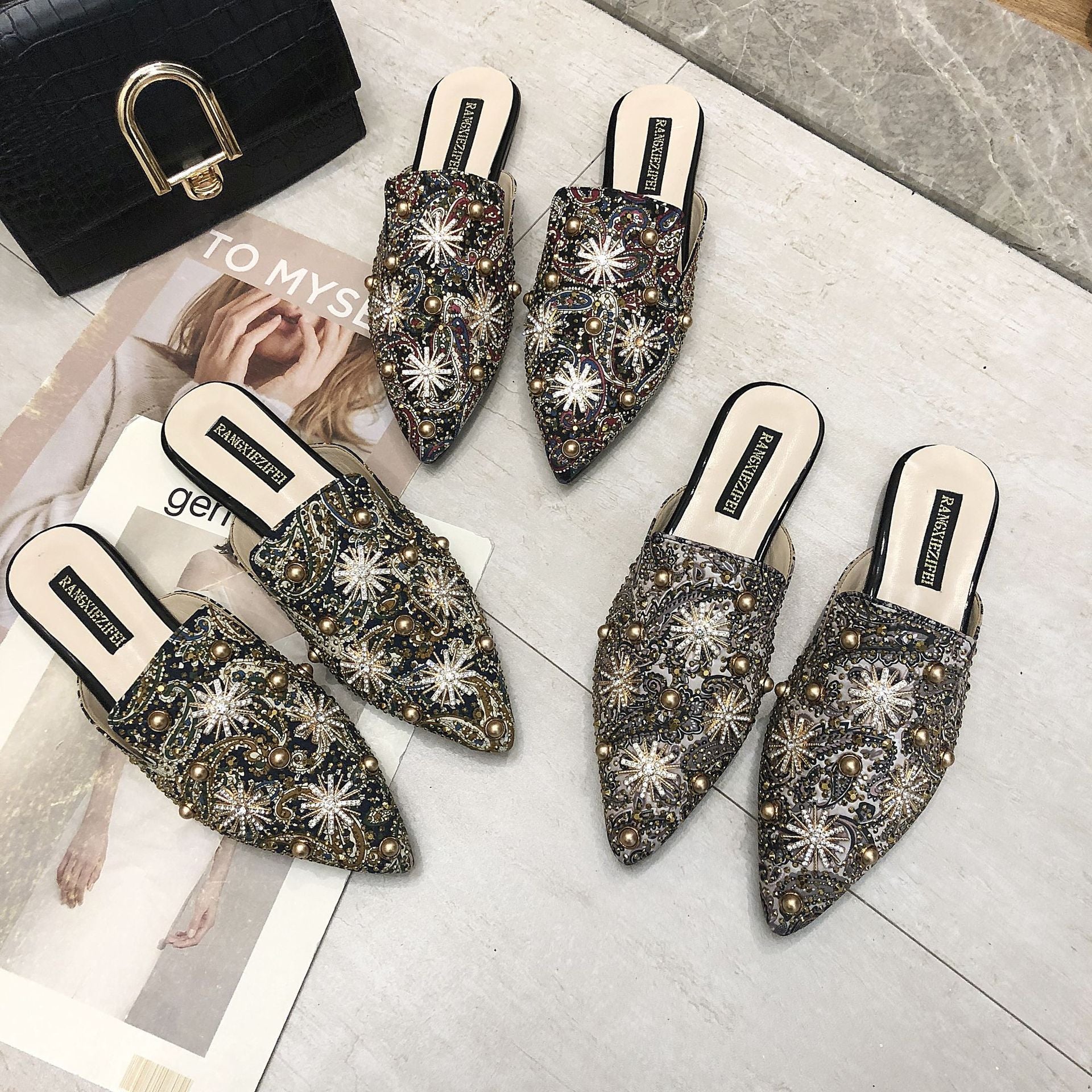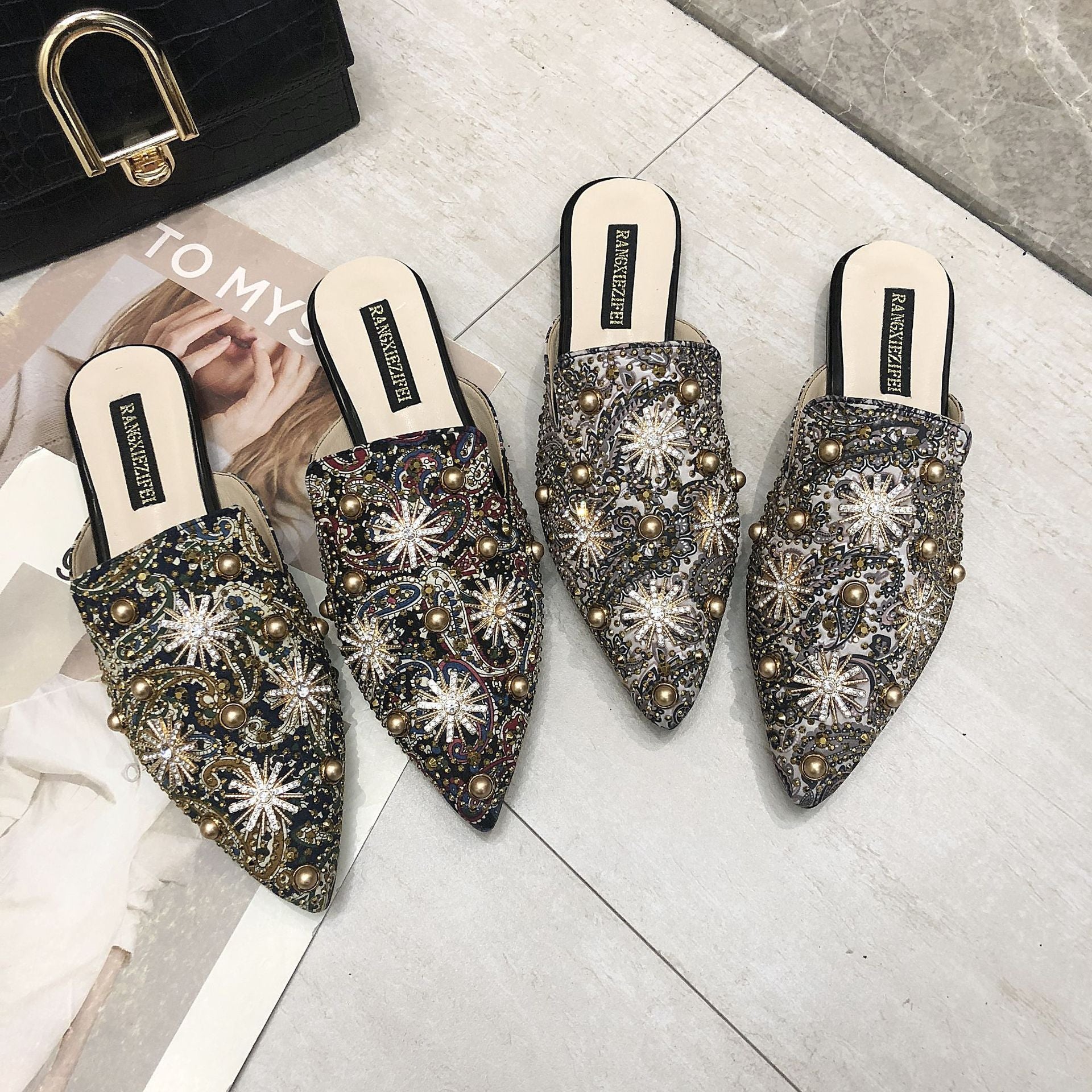Baotou Half Slippers Women Flat Pointed Lazy Sandals And Slippers