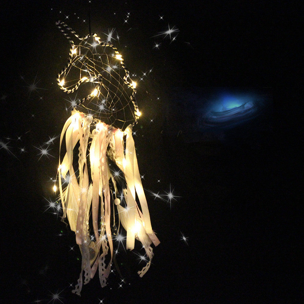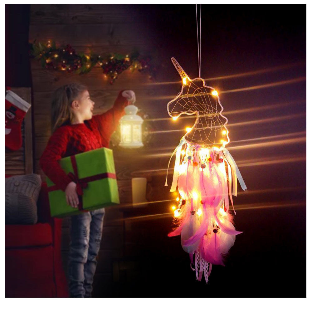 Color: Colorful Auspicious Cloud Unicorn Dream Catching Net with Lamp, Pink Auspicious Cloud Unicorn Dream Catching Net with Lamp