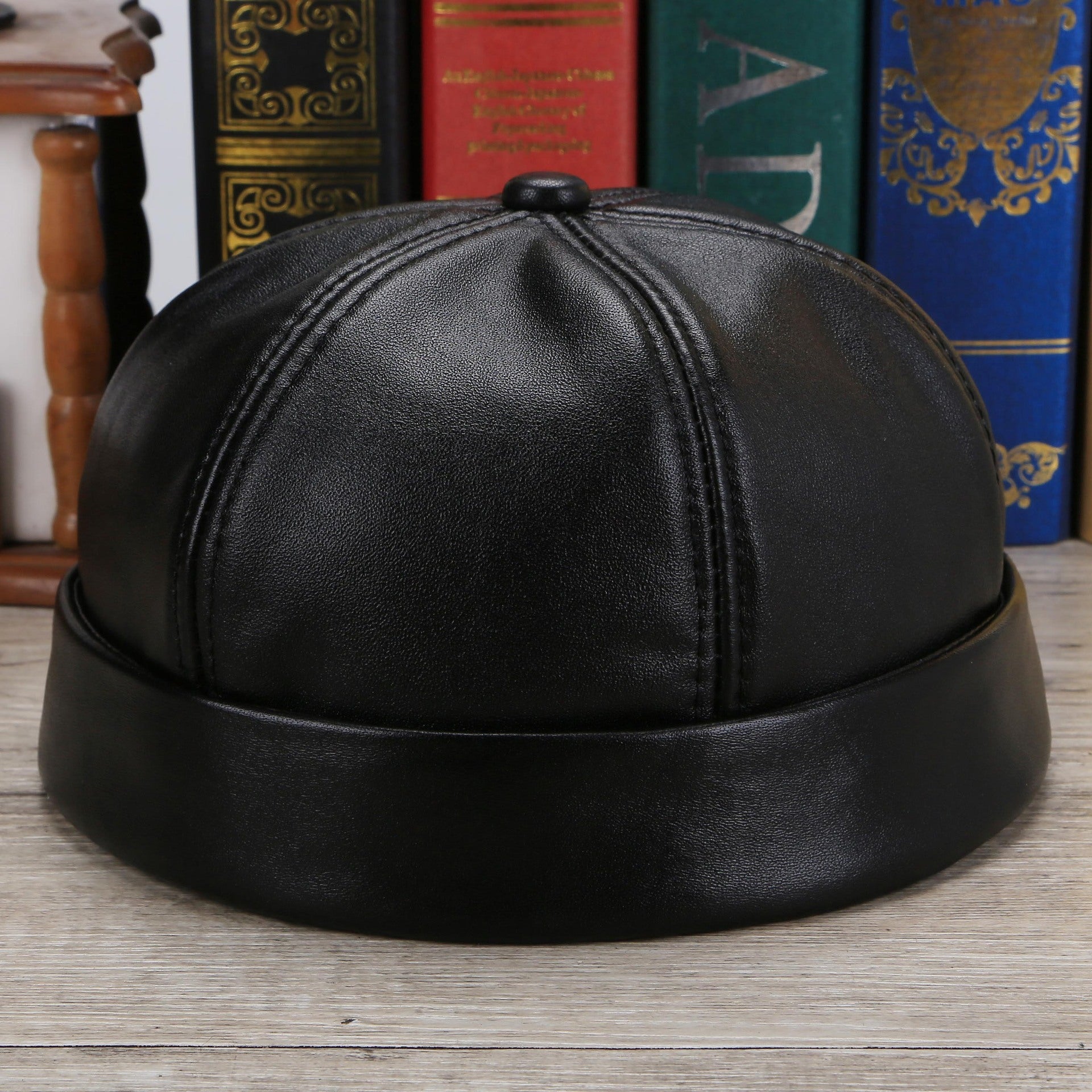 Crafted for timeless appeal and everyday comfort, this classic landlord-style dome hat is made from high-quality sheepskin leather. With a smooth finish and breathable lining, it offers both warmth and sophistication. Ideal for mature men who appreciate elegant, no-fuss style, this leather hat features an adjustable fit for personalized comfort.