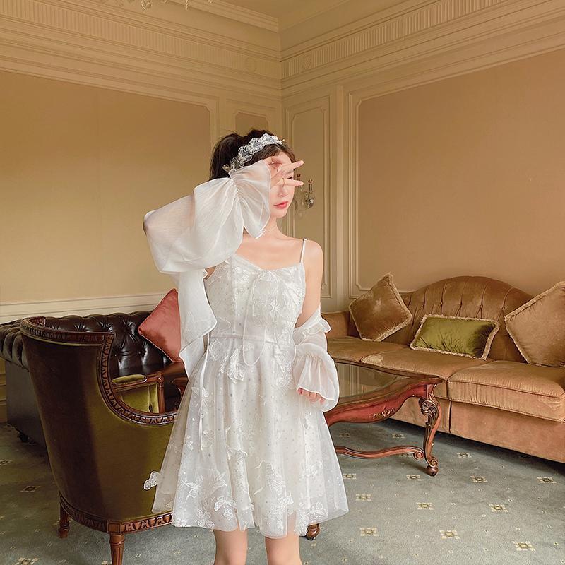 Color: Fairy Fairy White Butterfly (suspender style), two-piece suspender skirt + cloak