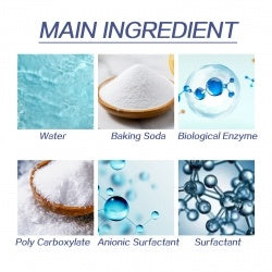 Our Activatod Enzyme Laundry Stain Remover contains baking soda, biological enzyme, poly carboxylate.