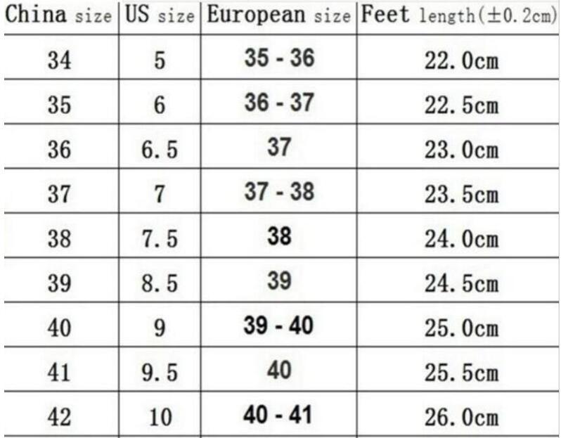 1. Asian sizes are 1 to 2 sizes smaller than European and American people. Choose the larger size if your size between two sizes. Please allow 2-3cm differences due to manual measurement.