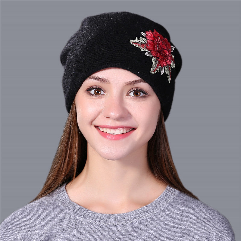 Fox Fur Ball Embroidery Knitted Hat