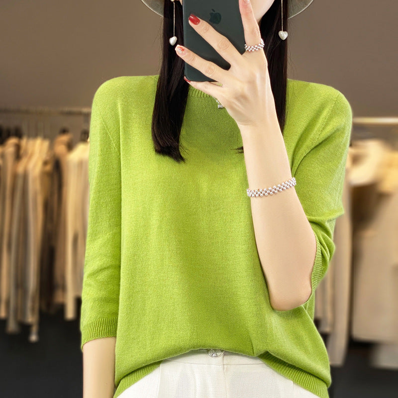 Front Line Ready-made Garments Worsted Sweater Half Sleeve Round Neck Pure Color All-matching Loose T-shirt