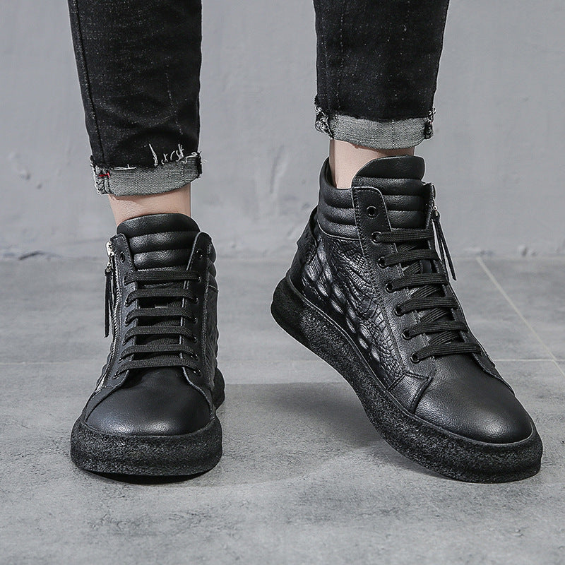 High-top Shoes Men's Leather Casual Shoes Korean Fashion Shoes