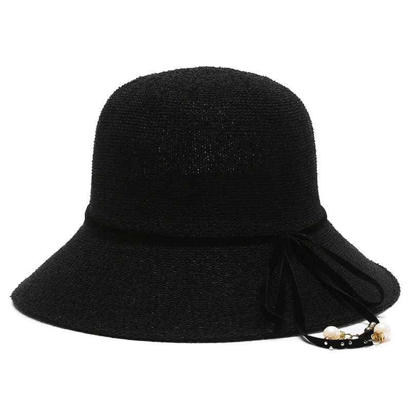 This Korean-inspired fisherman hat features breathable warp knitting and a stylish monochrome design accented with a bow. Made from QQ yarn, it offers lightweight sun protection while keeping you comfortable and fashionable.