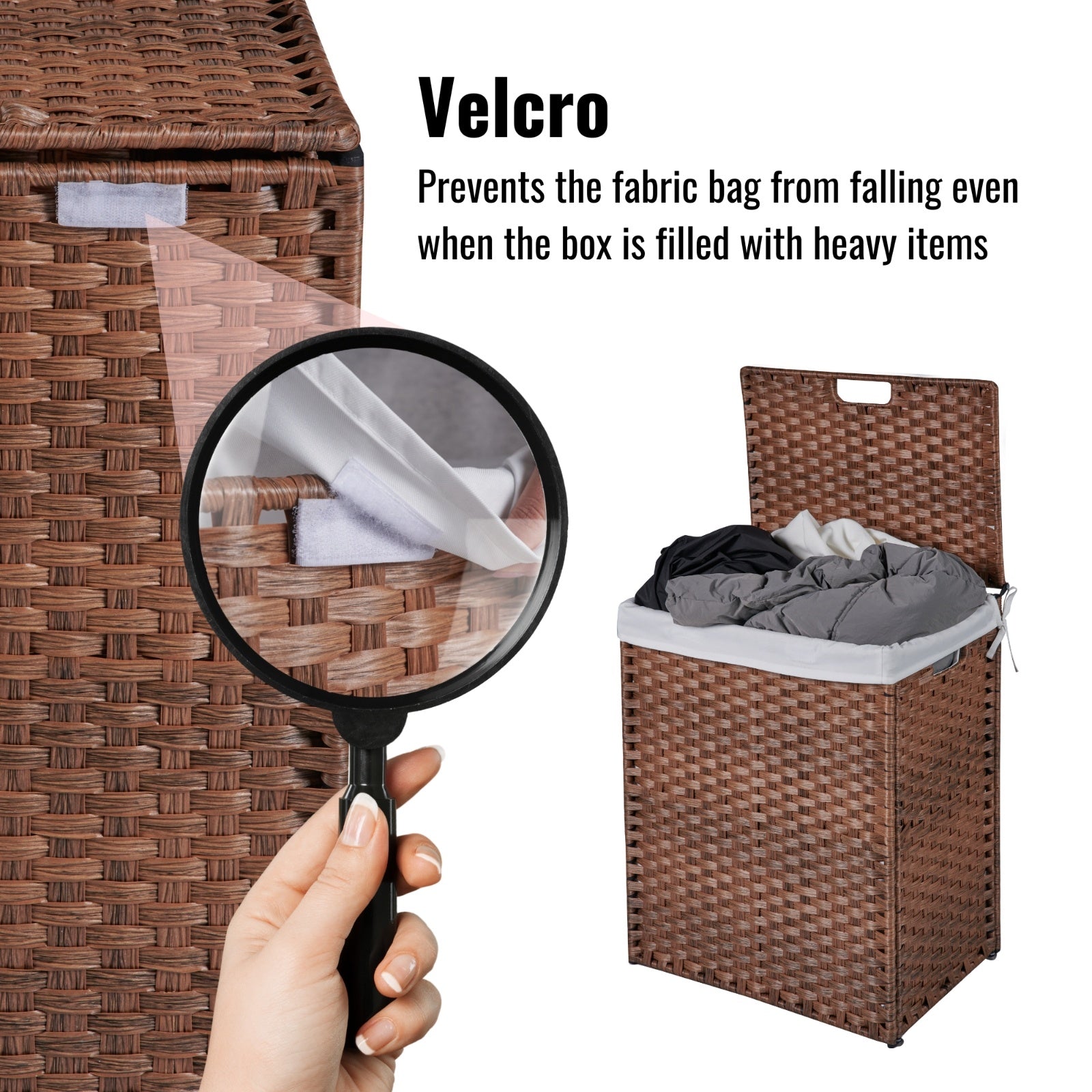 Laundry Hamper With Lid PE Rattan Powder Coating Frame Clothes Hampers With 02 Removable Bags,