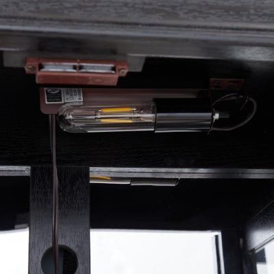 Product Name:Lighted Glass Curio Display Cabinet with Wood Frame - Elegant Glass Storage for Wine, Toys & Collectibles - Perfect for Living Room, Kitchen & Pantry - Bulb Included, Black